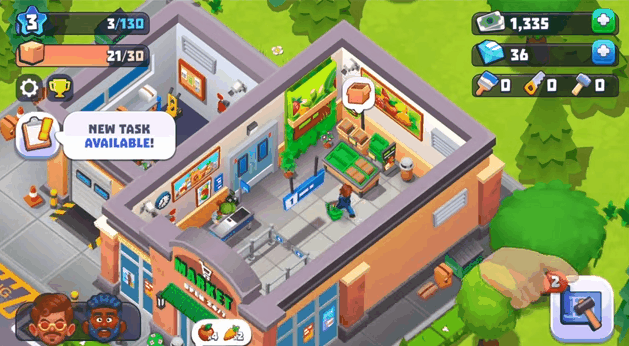A pessoa começa com um mercadinho pequeno, repõe as prateleiras, passa produtos no caixa, junta dinheiro e em poucos minutos a loja já está enorme.